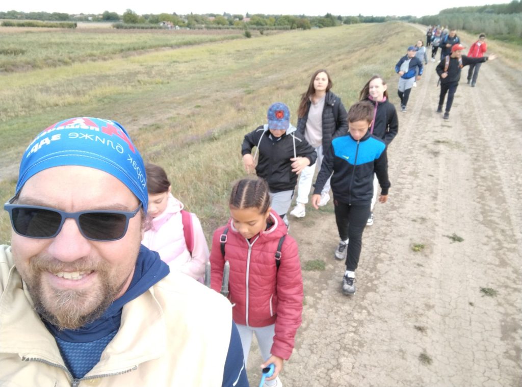 Ricz Dániel szakmai vezetővel és Csábi Székács Krisztina testnevelő tanár szervezésében valósult meg a gyalogtúra. A csapat az óbecsei Tisza- parttól a Sárga házig gyalogolt, majd a Tisza menti erdei ösvényen tért vissza. Ez a tevékenység hozzájárult a barátkozáshoz, az egészséges életmódra való neveléshez, környezetünk és maga a természet jobb megismeréséhez.