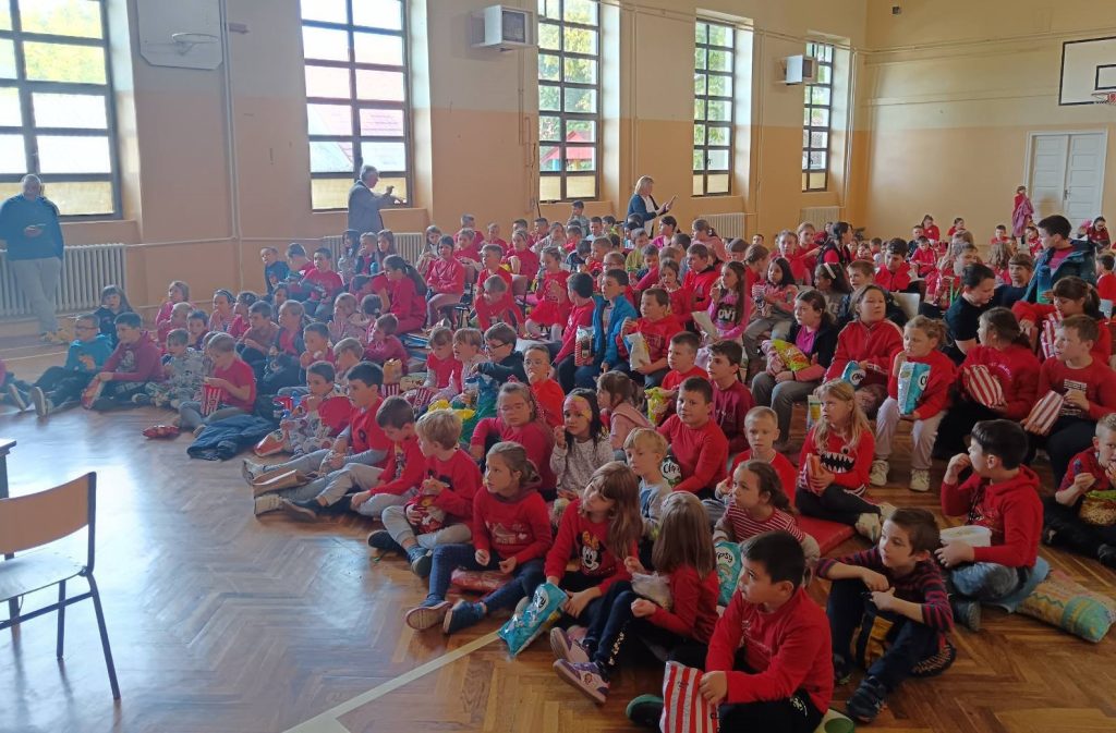 A zatim su u pravoj bioskopskoj atmosferi svi učenici pogledali crtani film "Mačak Feliks". Ezután valódi mozihangulatban minden tanuló megnézte Félix, a macska című rajzfilmet.