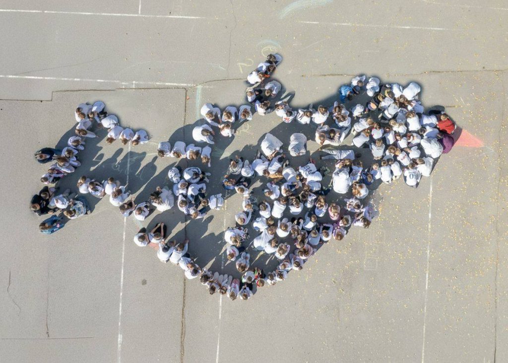 A tanulók szélforgókkal díszítették fel az iskolaudvart, majd ebben a környezetben fényképeket is készítettek. Ezután békeüzenetet küldtek a világnak: testükkel, egy fehér galambot formáltak meg, amely előzőleg az aszfaltra lett rajzolva Drónfelvétellel örökítettük meg.