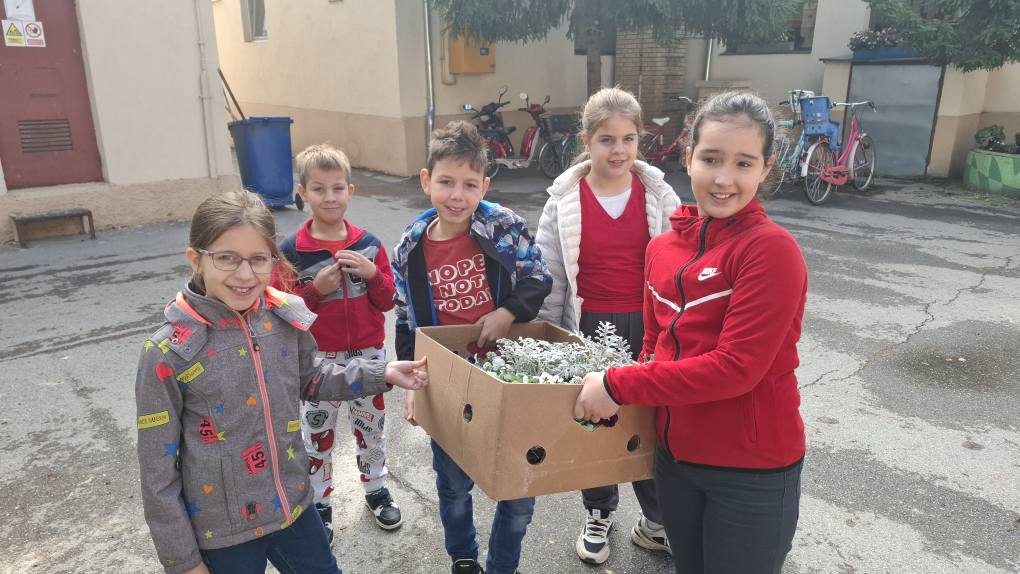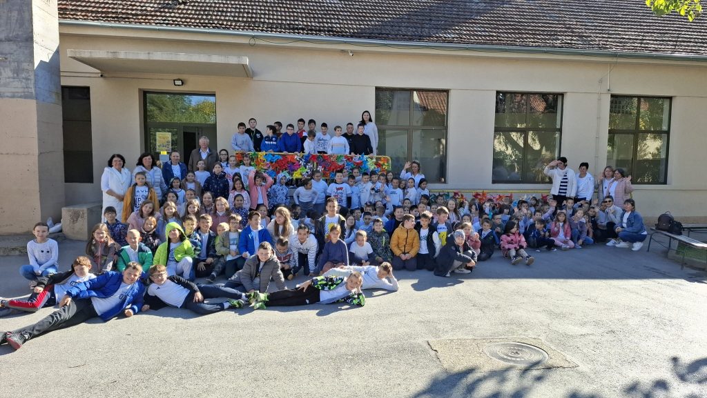 Učenici su svojim vetrenjačama okitili školsko dvorište, a onda se i slikali u tom okruženju. Zatim su poslali poruku mira u svet, ispunivši svojim telima belog goluba nacrtanog na betonu. Sve to je ovekovečeno snimkom iz drona.